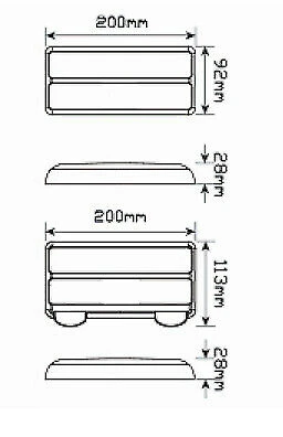 The dimensions are 200mm x 113mm , they are 28mm deep (with number plate light)The dimensions are 200mm x 92mm , they are 28mm deep (without number plate light)120cm of cable preconnected to each light Stainless steel nuts , washers and spring washers included